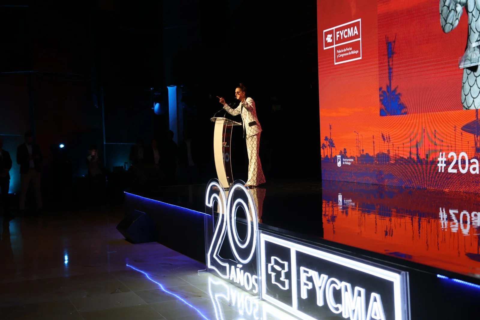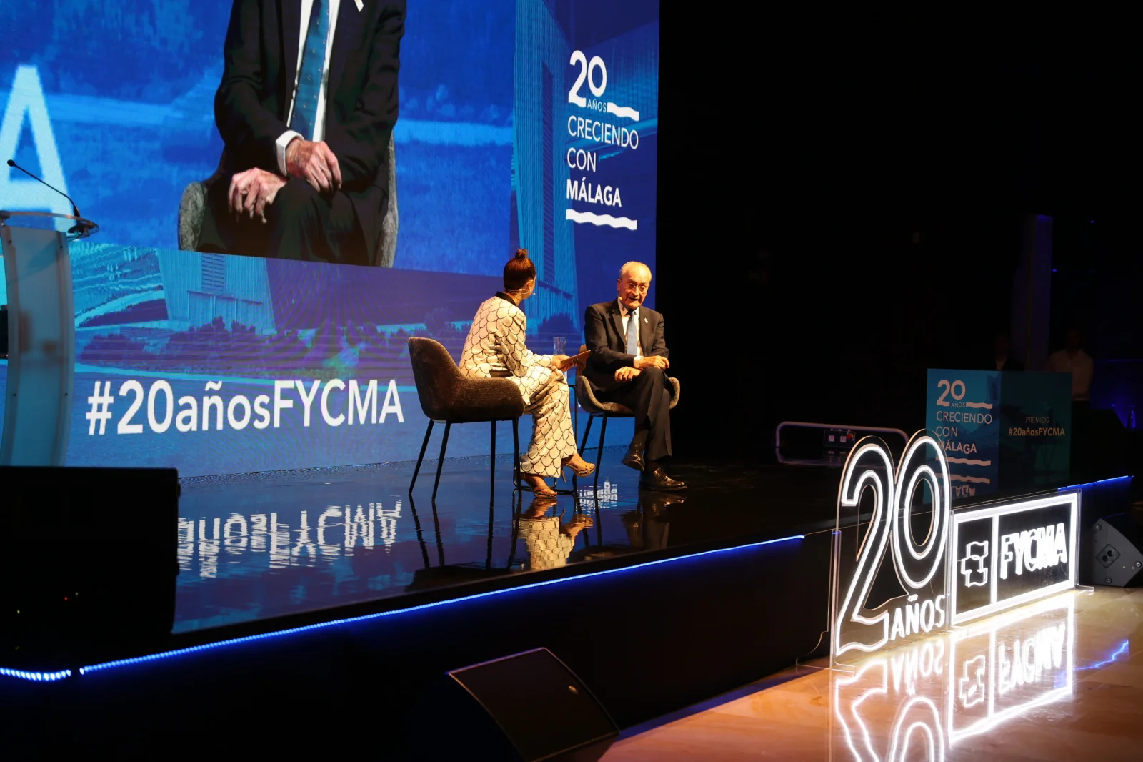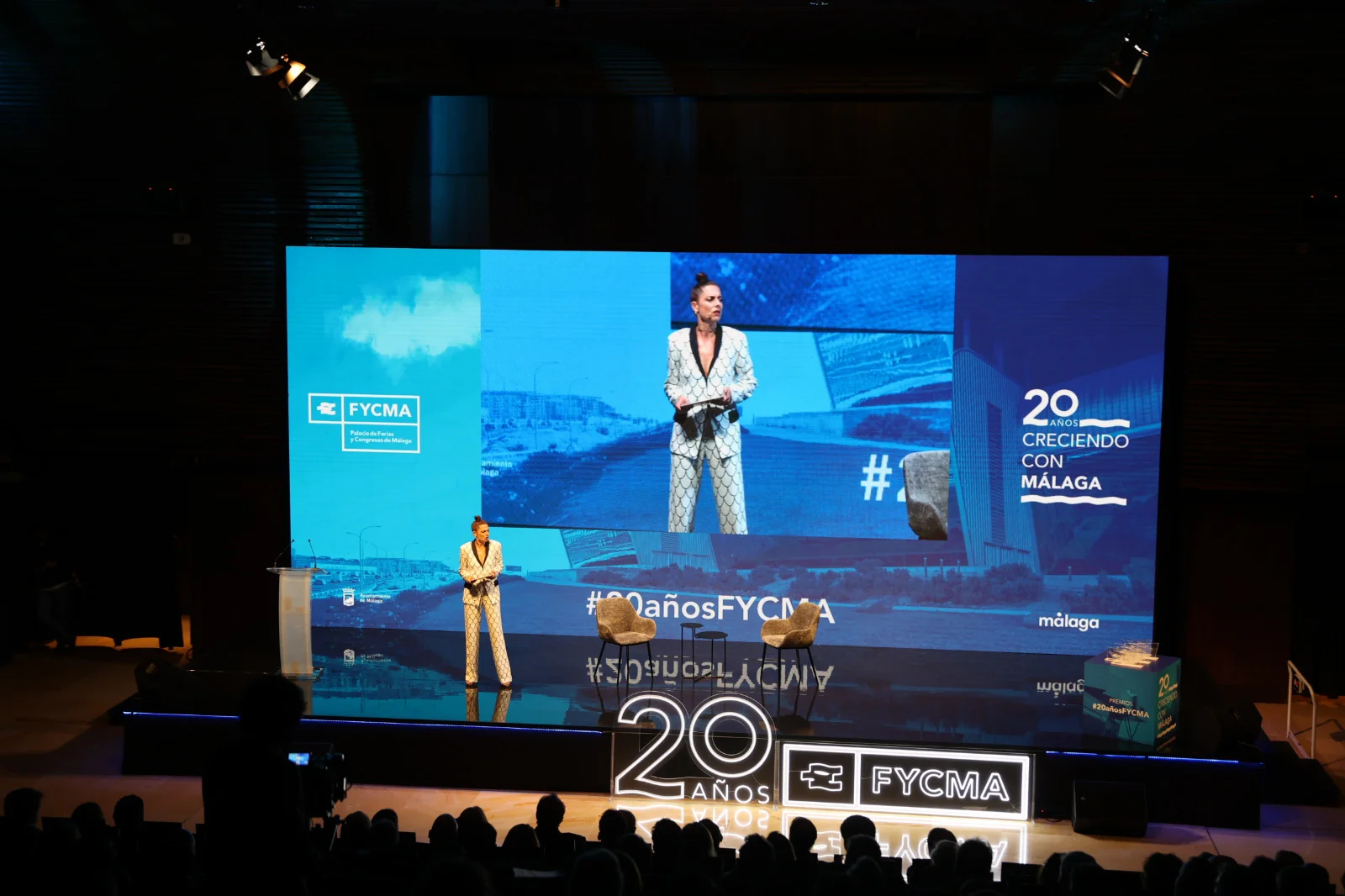 Cartelería luminosa con trasera transparente para escenario en auditorio.